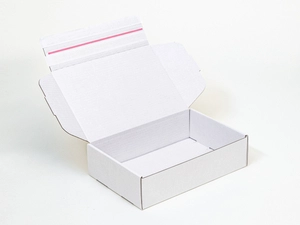 Karton fasonowy z paskiem klejowym i tasiemką zrywającą 200x120x80mm 3W B 440g/m2 Biały-Biały Komplet 20 szt.