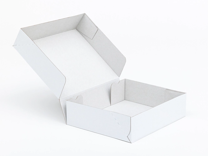 Materiał:• tektura falista: 3-warstwowa• fala: E• gramatura: 420 g/m2• kolor: Biały-Biały