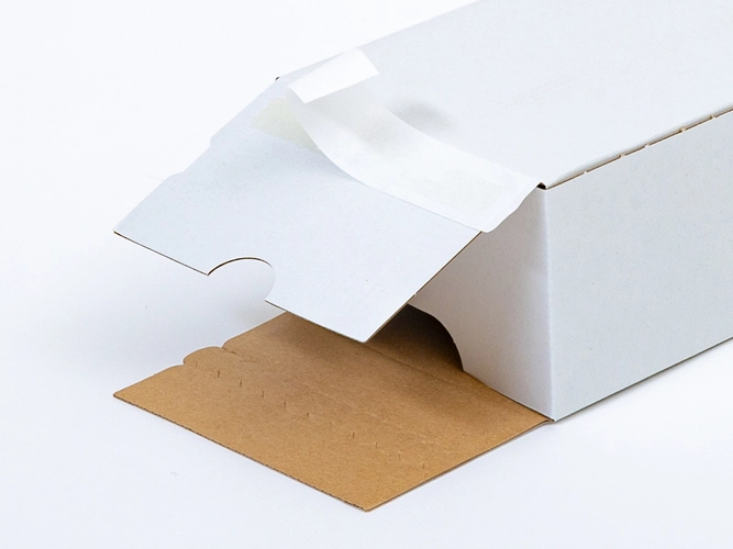 Karton fasonowy z paskiem klejowym i tasiemką zrywającą 200x120x80mm 3W E 350g/m2 Biały