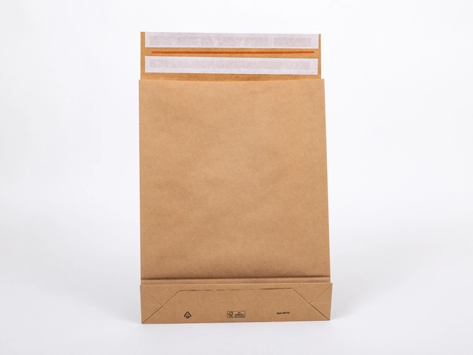 Dzięki zastosowaniu klapy samoprzylepnej i dna blokowego przesyłka jest odpowiednio chroniona w czasie transportu.