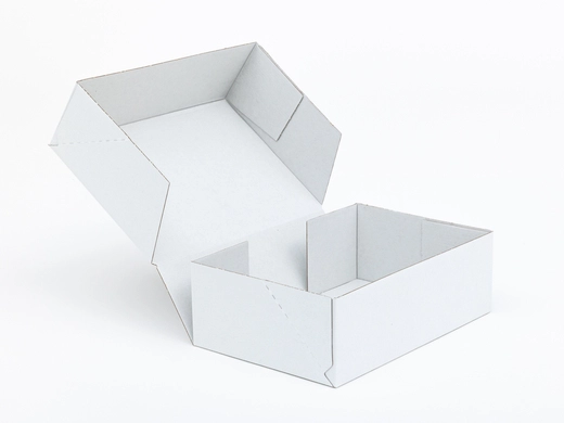 Materiał:• tektura falista: 3-warstwowa• fala: E• gramatura: 390 g/m2• kolor: Biały-Biały
