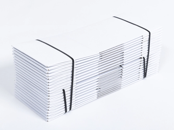 Materiał:• tektura falista: 3-warstwowa• fala: E• gramatura: 420 g/m2• kolor: Biały-Biały
