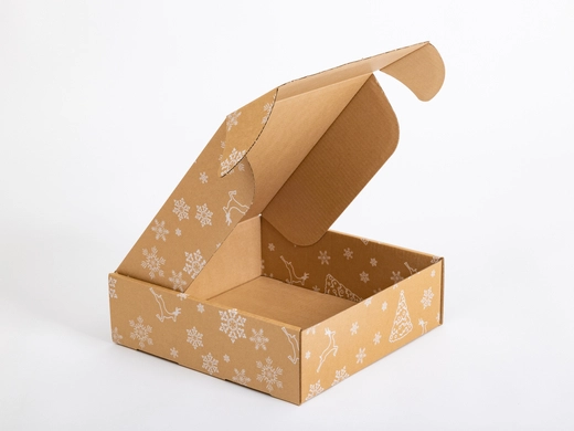 Karton fasonowy o wymiarach 320x320x100 mm, ozdobiony świątecznym nadrukiem, to doskonała opcja do pakowania przesyłek w okresie bożonarodzeniowym i noworocznym. Świąteczne motywy na kartonie to detal, który sprawi, że przesyłki wyróżnią się na tle innych, wysyłanych w tradycyjnych szarych pudełkach. Świąteczny karton świetnie sprawdzi się również jako opakowanie prezentowe — niezależnie, czy upominki mają być wręczane klientom, pracownikom, partnerom biznesowym, czy członkom rodziny.