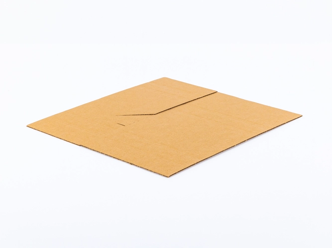 - Karton należy zgiąć do góry wzdłuż wyznaczonych linii zgięć i przekręcić go o 90 stopni, aby uzyskać kształt krzyża.