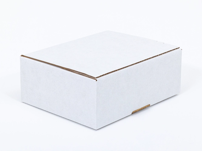 Karton fasonowy z paskiem klejowym i tasiemką zrywającą 250x200x100mm 3W B 360g/m2 Biały Paleta 1840 szt.