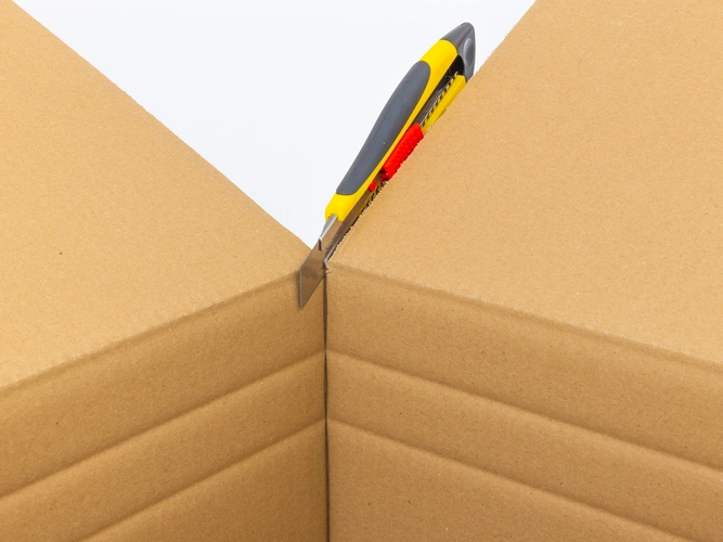 • Linie bigowania pozwalają dostosować wysokość kartonu odpowiednio do zawartości. W rogach kartonu wystarczy naciąć tekturę do wybranej wysokości i złożyć klapy w tradycyjny sposób.
