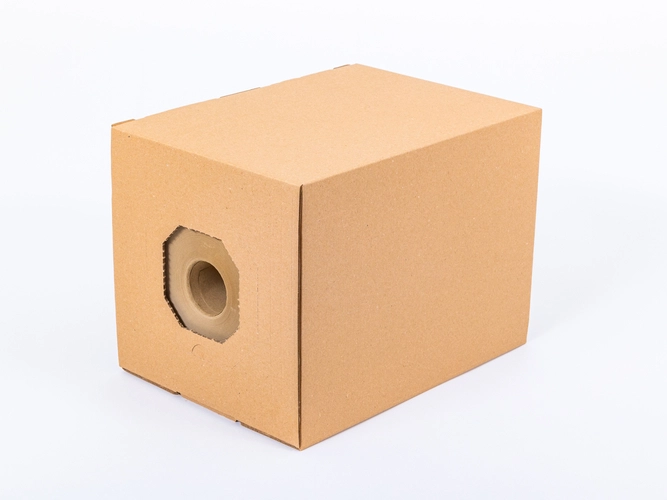 - Przed pierwszym użyciem, należy usunąć zabezpieczenie z otworu dozującego w kartonowym dyspenserze. Dzięki specjalnemu ząbkowaniu (perforacjom), wystarczy pociągnąć za tekturę, by odblokować dostęp do papierowego wypełniacza.