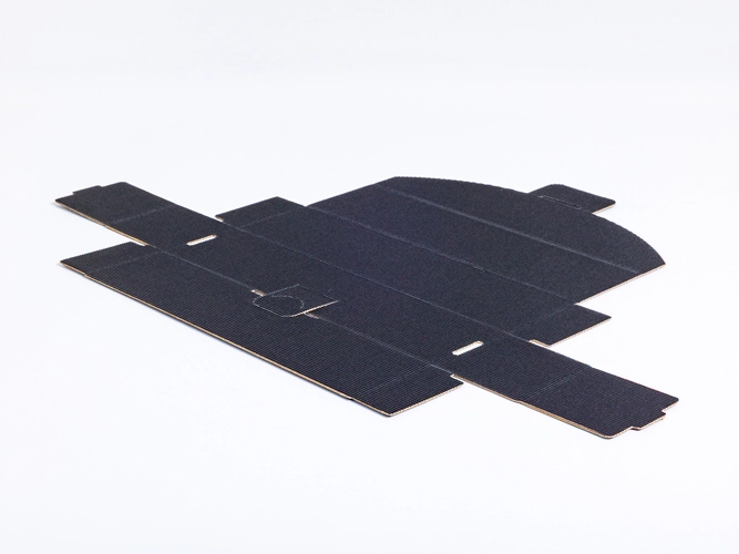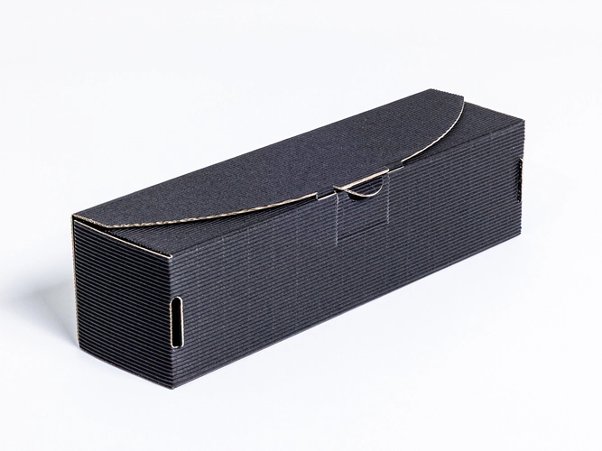 Czarny karton z ryflowanej tektury to eleganckie i funkcjonalne opakowanie, idealne do zapakowania jednej butelki wina.