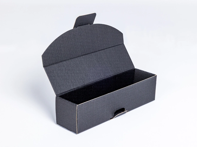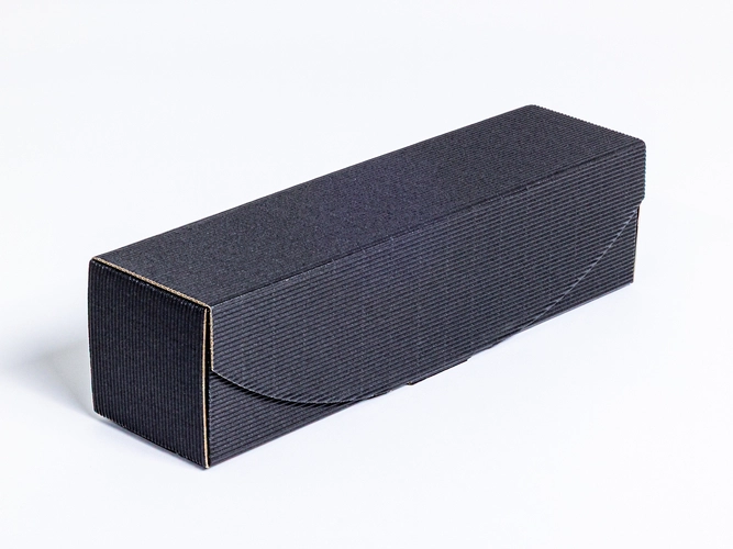 Czarny karton z ryflowanej tektury to eleganckie i funkcjonalne opakowanie, idealne do zapakowania jednej butelki wina.