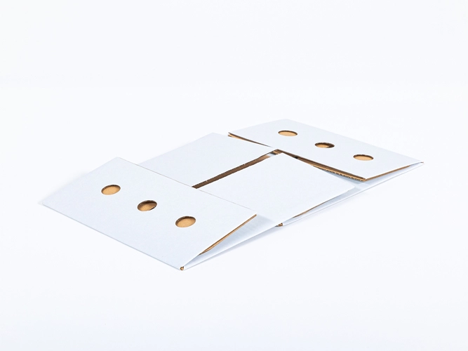 - 3 otwory wentylacyjne (śr. 3 cm) – wspomagają cyrkulację powietrza. Ogranicza to skraplanie się pary wodnej wewnątrz opakowania i pomaga utrzymać suchą powierzchnię kartonu.