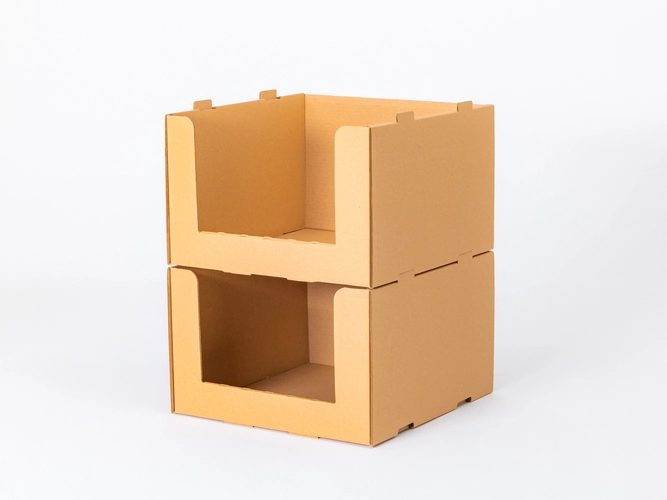 Regał kartonowy 400x400x260 mm został zaprojektowany w sposób umożliwiający łatwe łączenie kilku elementów w większy, spójny system przechowywania. Dzięki modułowej konstrukcji można zestawiać ze sobą wiele regałów w pionie, dopasowując układ do indywidualnych potrzeb przestrzeni magazynowej, biurowej czy produkcyjnej.