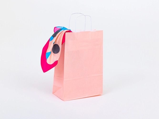 Różowa torebka na prezent z uchwytem skręcanym – wygoda noszenia i stabilność