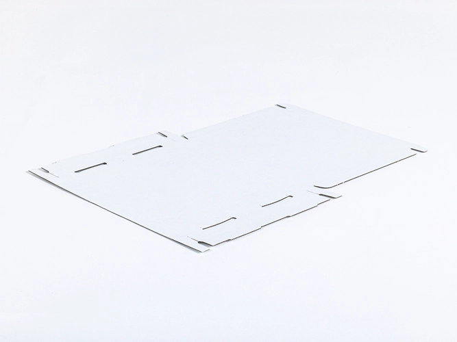 Materiał:• tektura falista: 3-warstwowa• fala: E• gramatura: 390 g/m2• kolor: Biały-Biały