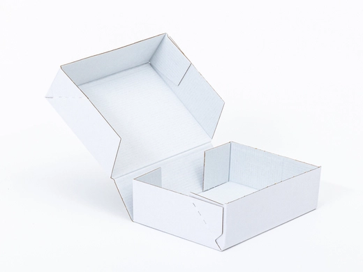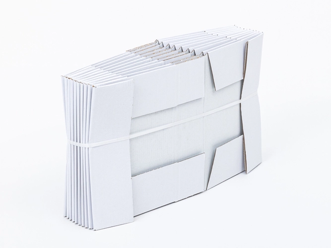 Materiał:• tektura falista: 3-warstwowa• fala: E• gramatura: 390 g/m2• kolor: Biały-Biały