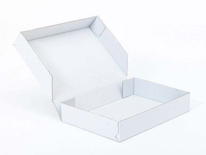 Materiał:• tektura falista: 3-warstwowa• fala: E• gramatura: 390 g/m2• kolor: Biały-Biały