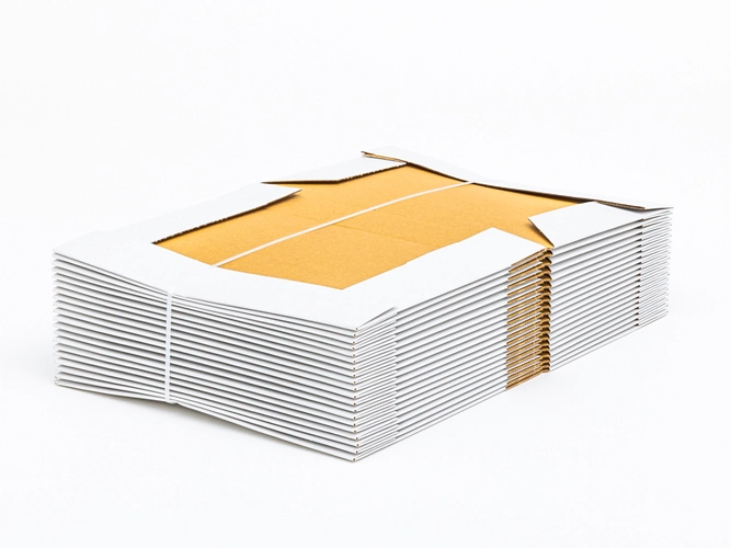 Materiał:• tektura falista: 3-warstwowa• fala: E• gramatura: 370 g/m2• kolor: Biały