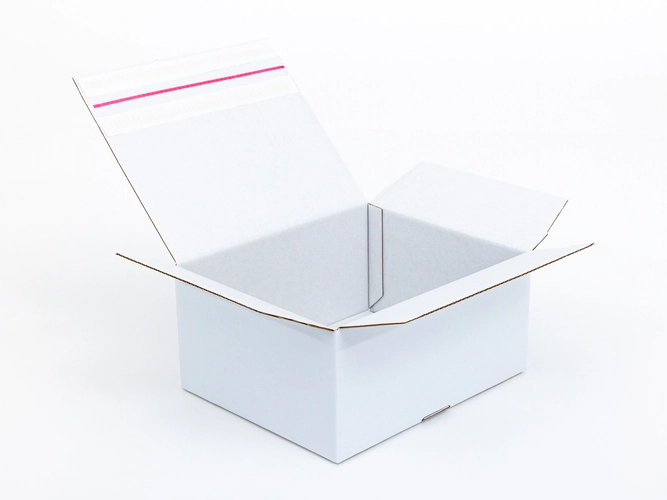 Karton fasonowy z paskiem klejowym i tasiemką zrywającą 300x250x150mm 3W B 440g/m2 Biały-BiałyPaleta 960 szt.