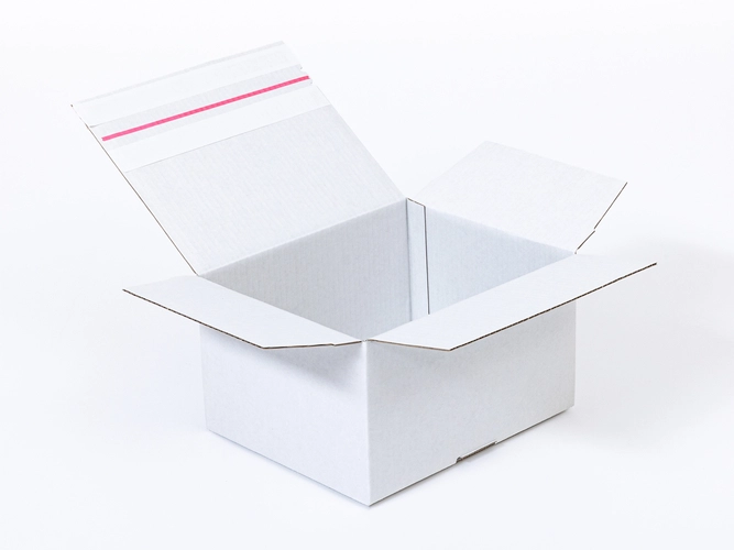 Karton fasonowy z paskiem klejowym i tasiemką zrywającą 250x200x150mm 3W B 380g/m2 Biały-BiałyKomplet 20 szt.