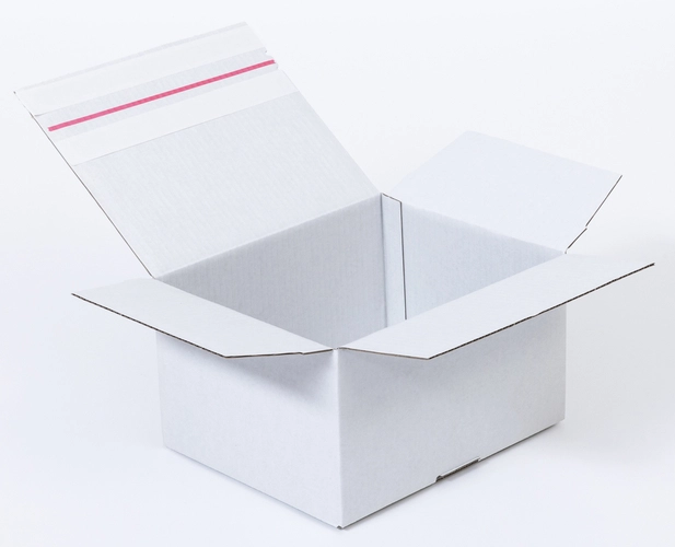 Karton fasonowy z paskiem klejowym i tasiemką zrywającą 250x200x150mm 3W B 380g/m2 Biały-BiałyPaczka 160 szt.