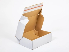 Karton fasonowy z podwójnym paskiem klejowym i tasiemką zrywającą 300x200x100mm 3W E 350g/m2 Biały Komplet 40 szt.