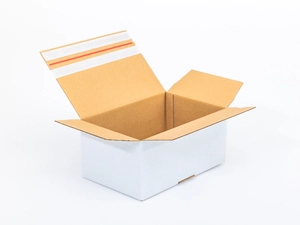 Karton fasonowy z paskiem klejowym i tasiemką zrywającą 300x200x150mm 3W B 360g/m2 Biały Komplet 20 szt.