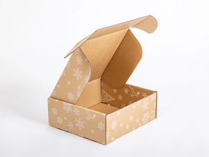 Karton fasonowy świąteczny szary w białe śnieżynki i renifery 305x270x110mm 3W B 460g/m2 Komplet 10 szt.